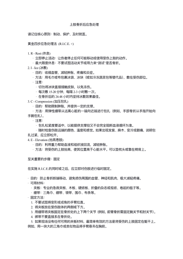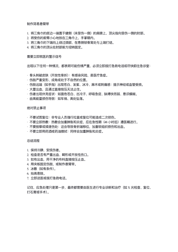 上肢骨折后应急处理