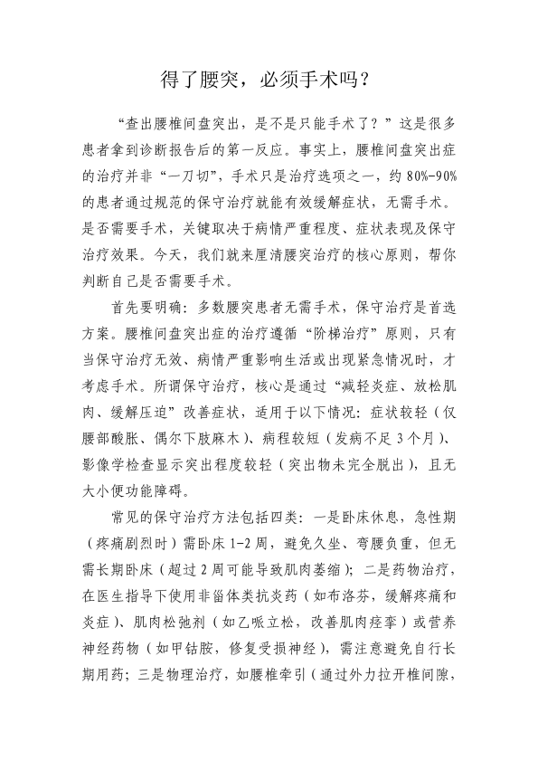 得了腰突,必须手术吗?