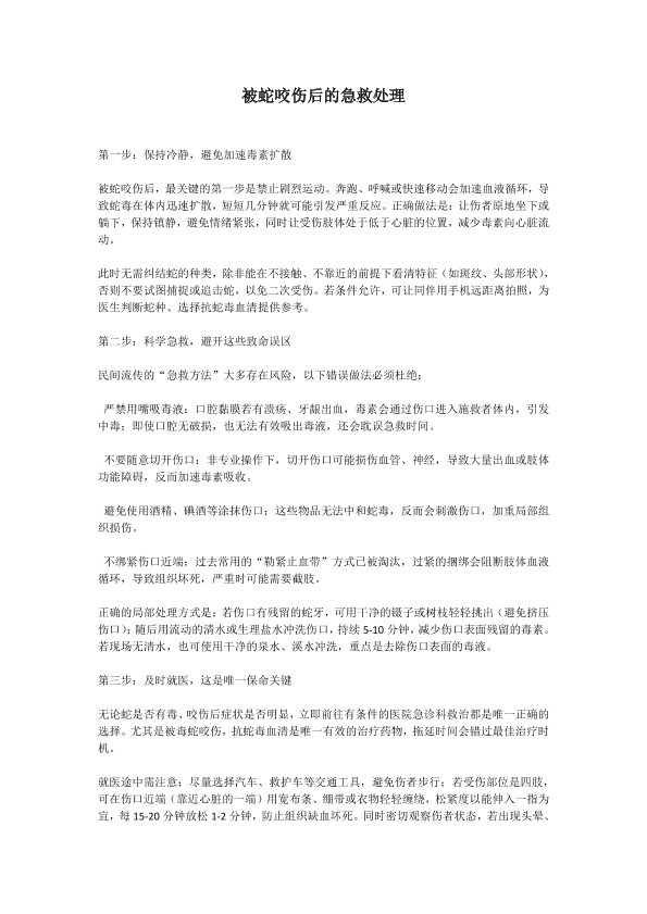 蛇咬伤的紧急处理