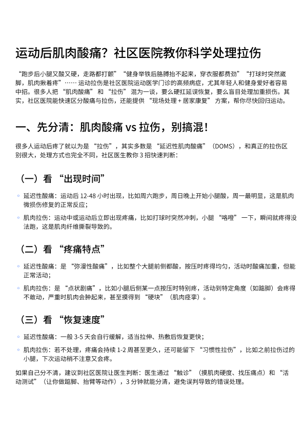 运动后肌肉酸痛?社区医院教你科学处理拉伤