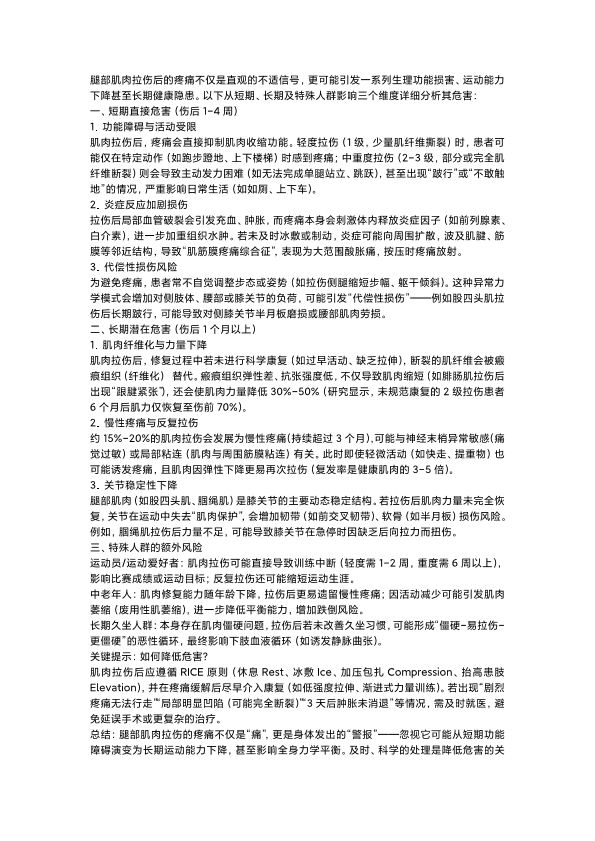 腿部拉伤疼痛的危害科普