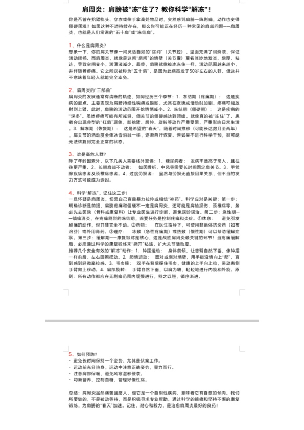 肩周炎: 肩膀被“冻”住了?教你科学“解冻”!