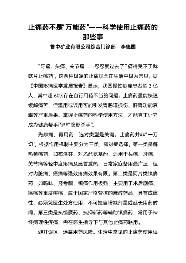 止疼药不是万能要——科学使用止疼药的那些事