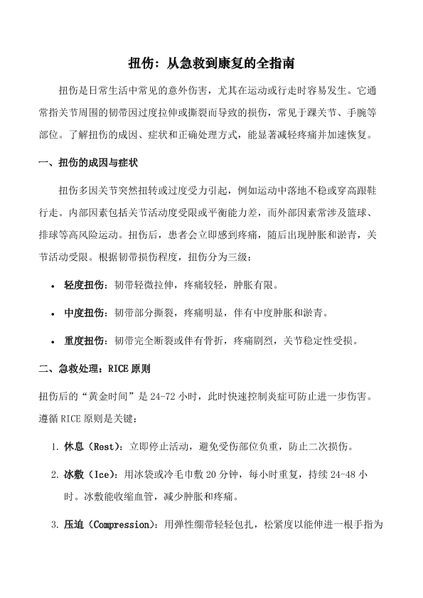 扭伤:从急救到康复的全指南