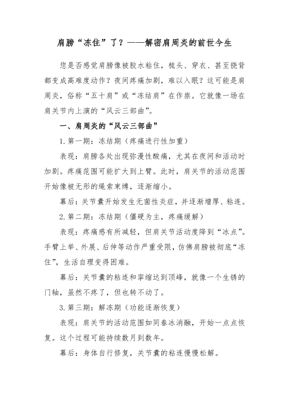 肩膀“冻住”了?——解密肩周炎的前世今生