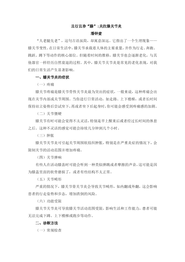 且行且珍“膝”:关注膝关节炎