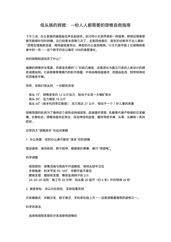低头族的救赎:一份人人都需要自救颈椎的指南