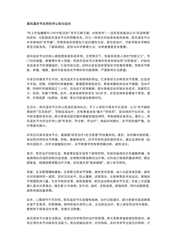类风湿性关节炎的科学认知与应对