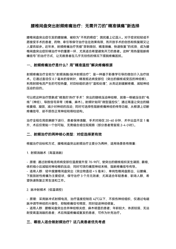 腰椎间盘突出射频疼痛治疗