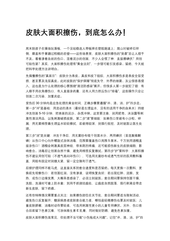 皮肤大面积擦伤,到底怎么办!