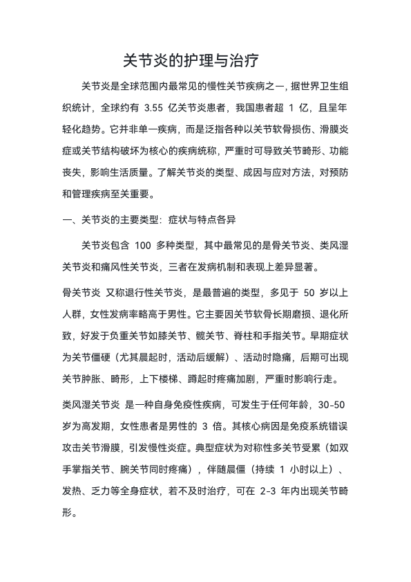 关节炎的科学治疗与护理