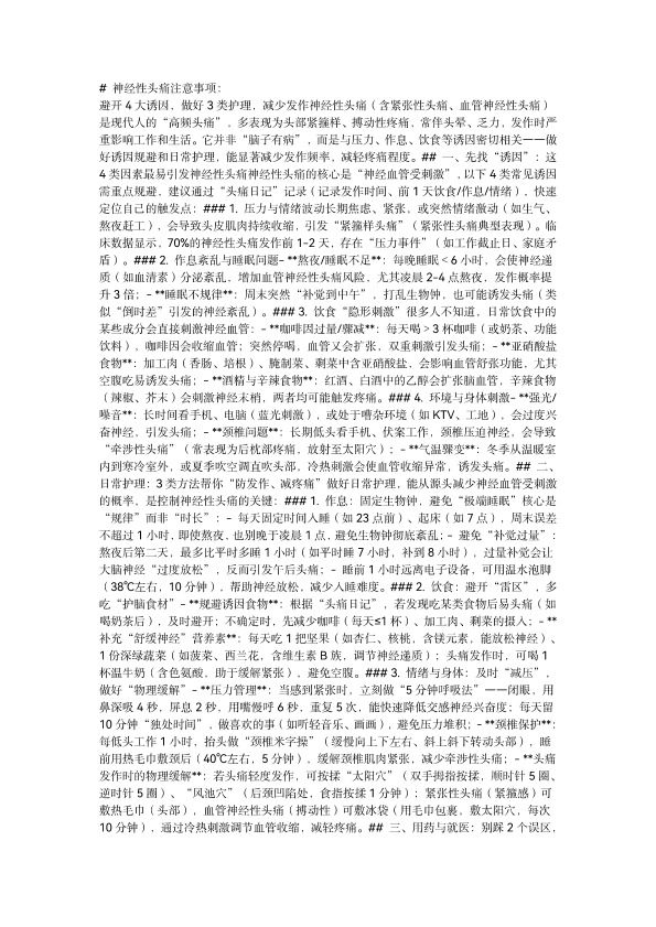 神经性头疼注意事项