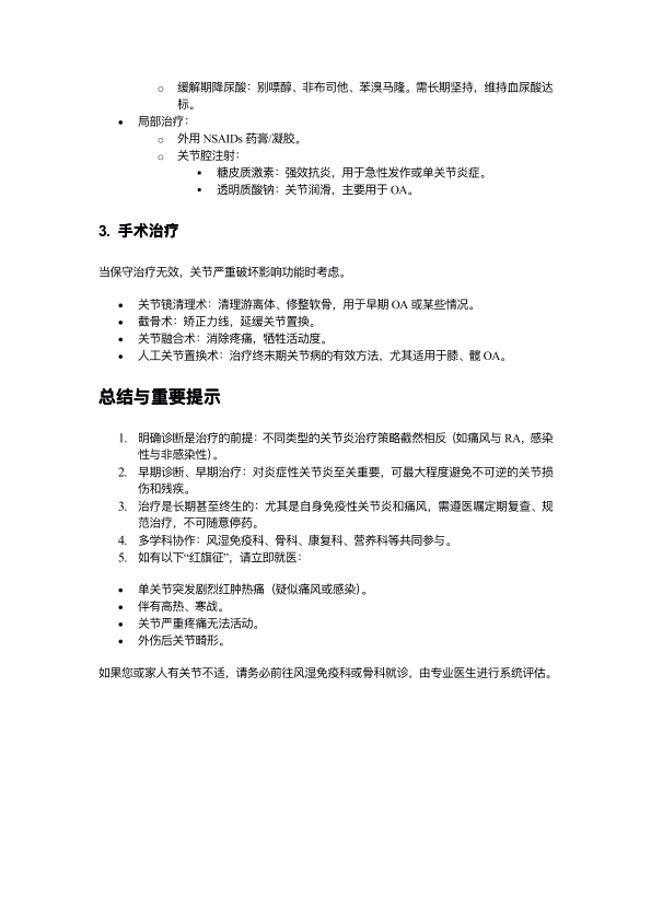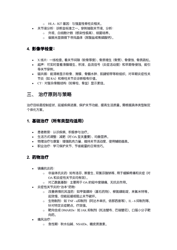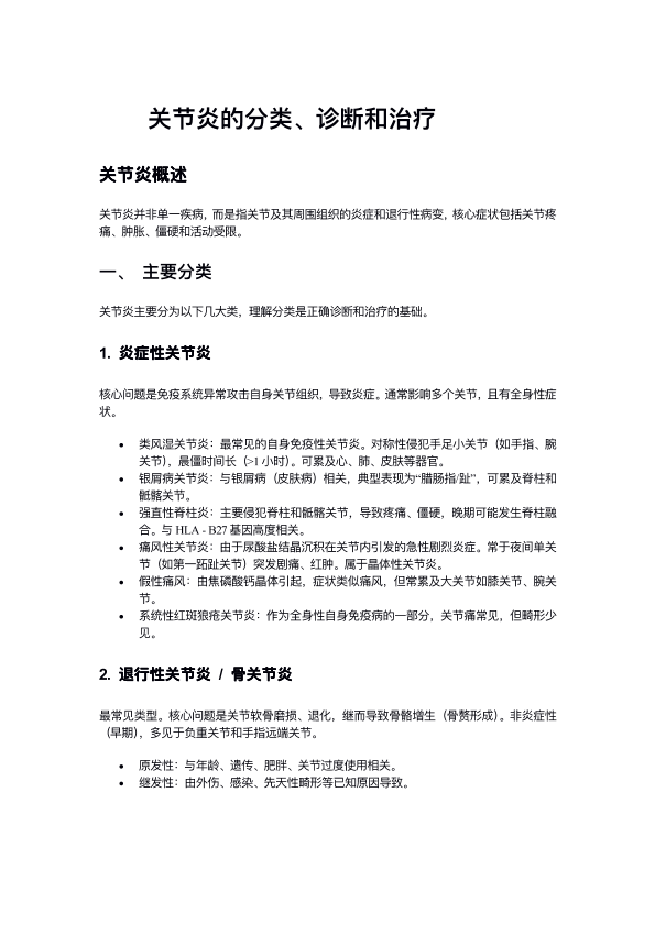 关节炎的分类、诊断和治疗