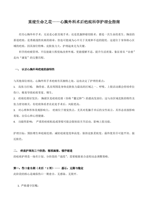 成长生命之花—心胸外科术后疤痕科学护理全指南