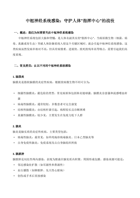 中枢神经系统感染:守护人体指挥中心的战役