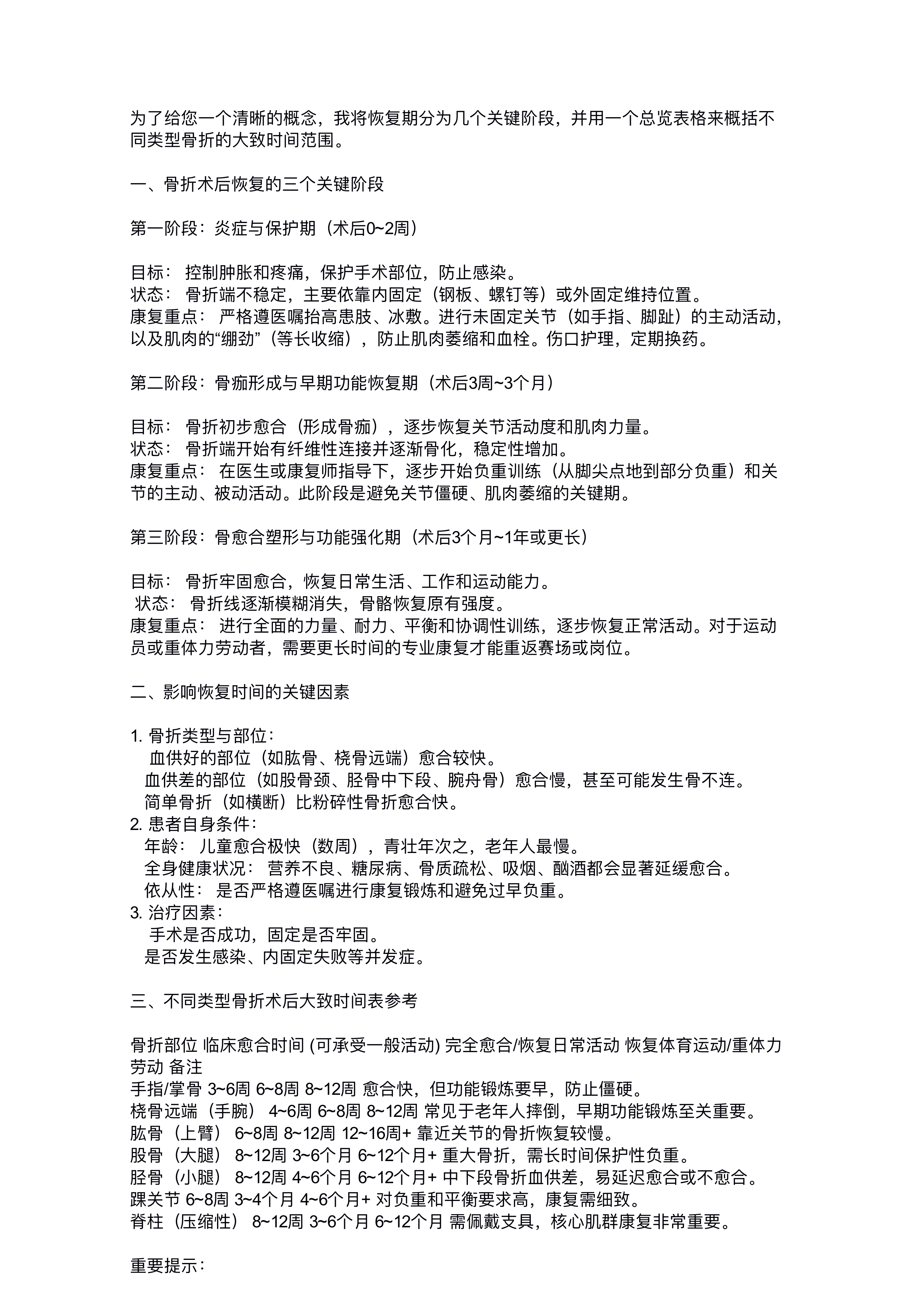 骨折术后恢复期大约需要多久