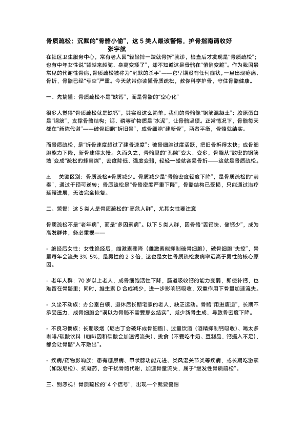 骨质疏松:沉默的“骨骼小偷”,这 5 类人最该警惕,护骨指南请收好