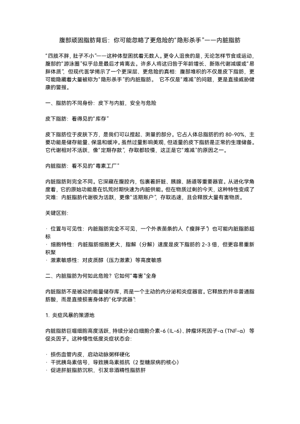 腹部顽固脂肪背后:你可能忽略了更危险的“隐形杀手”