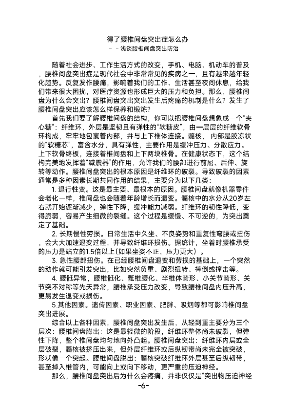 得了腰椎间盘突出怎么办——浅谈腰椎间盘突出防治