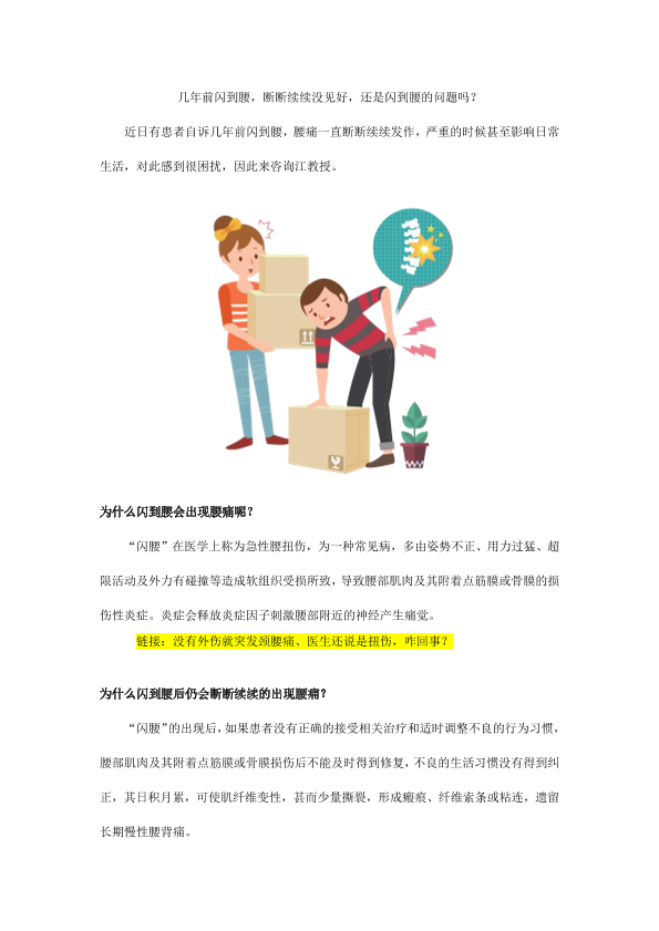 几年前闪到腰,断断续续没见好,还是闪到腰的问题吗?