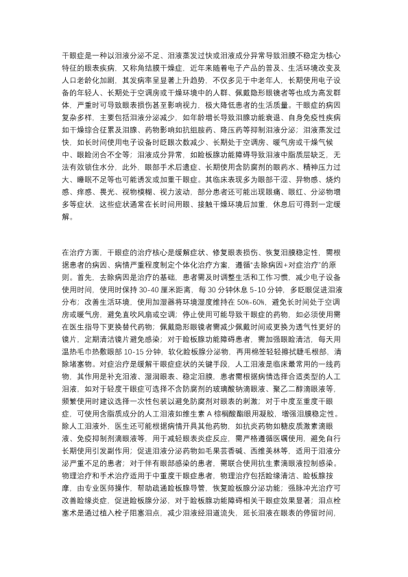 干眼症的治疗与预防