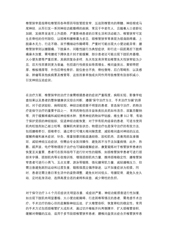 椎管狭窄的预防与治疗