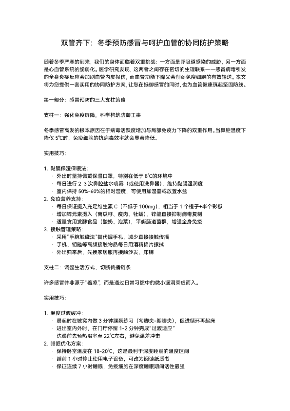 双管齐下:冬季预防感冒与呵护血管的协同防护策略