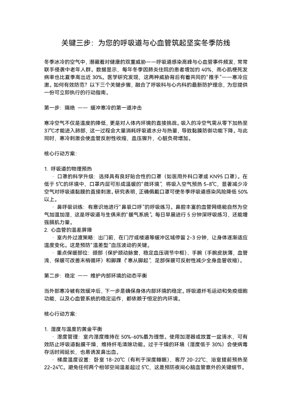 关键三步:为您的呼吸道和心血管筑起坚实冬季防线