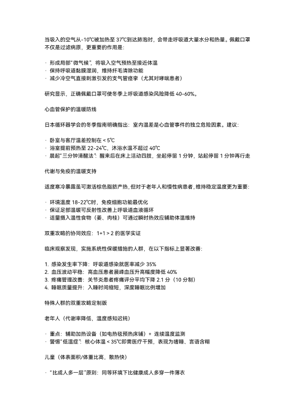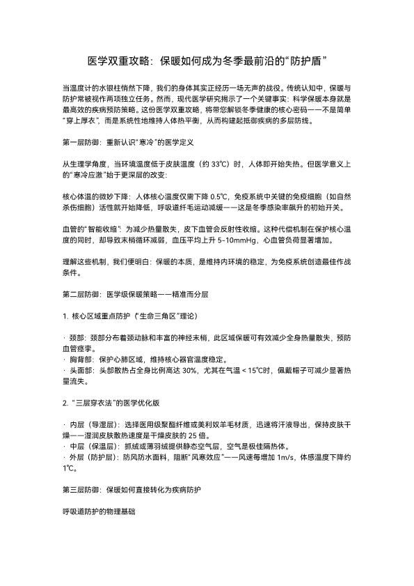 医学双重攻略:保暖如何成为冬季最前沿的“防护盾”