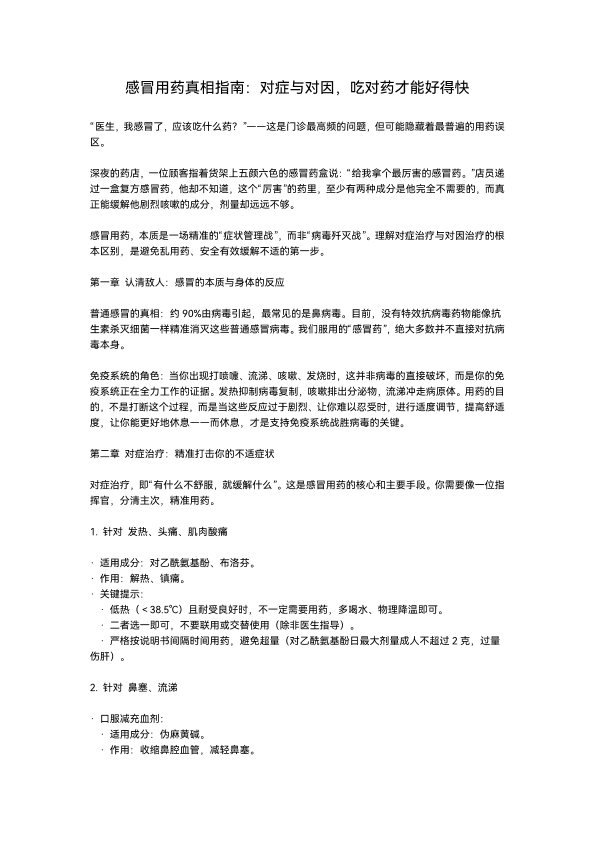 感冒用药真相指南对症与对因,吃对药才能好的快