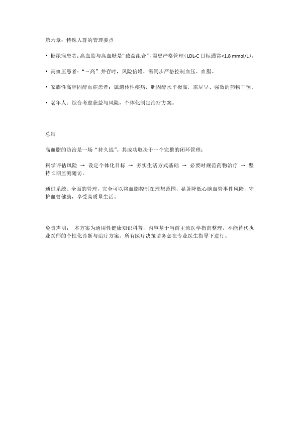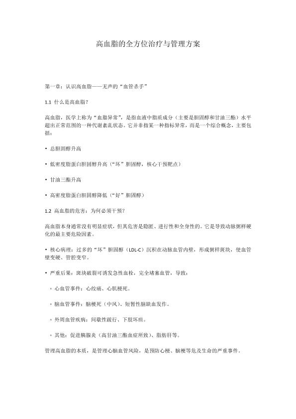 高血脂的全方位治疗与管理