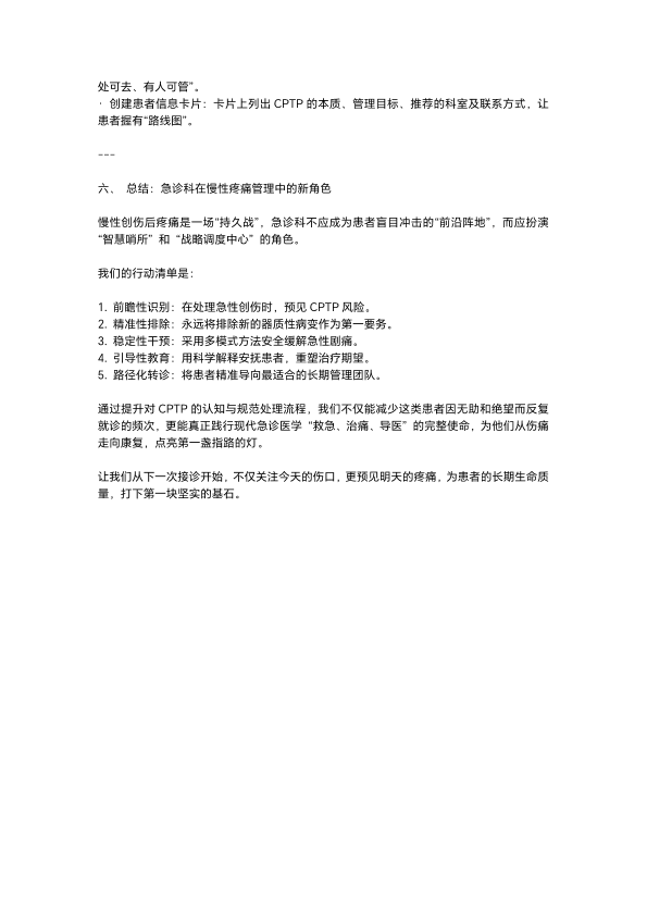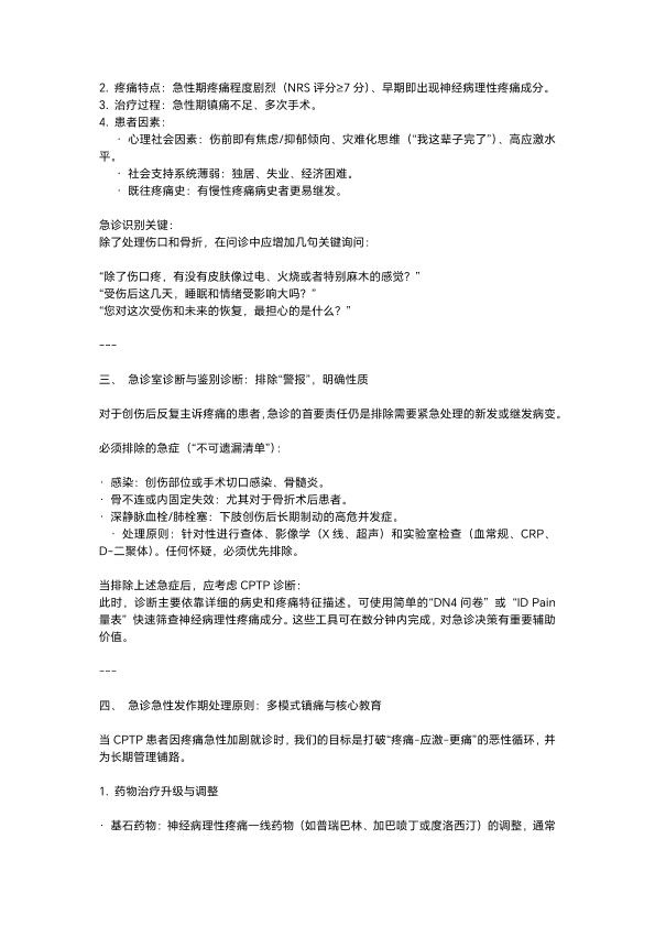 从急诊到康复:慢性创伤后疼痛的识别、干预与管理路径