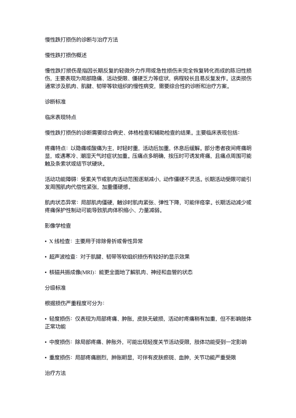 慢性跌打损伤的诊断与治疗⽅法