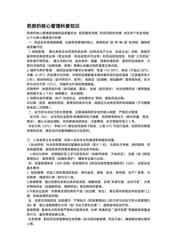 药房的核心管理科普知识