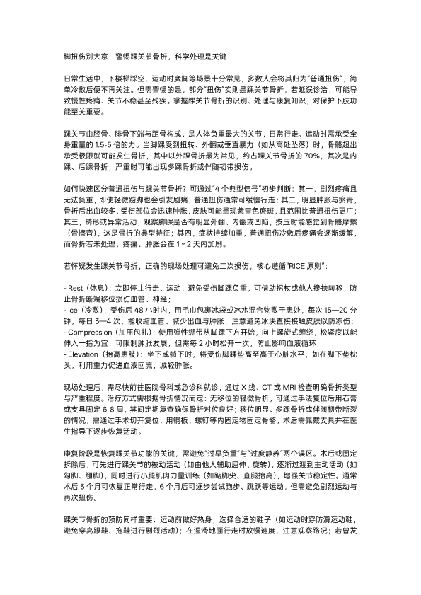 脚扭伤别大意:小心踝关节骨折