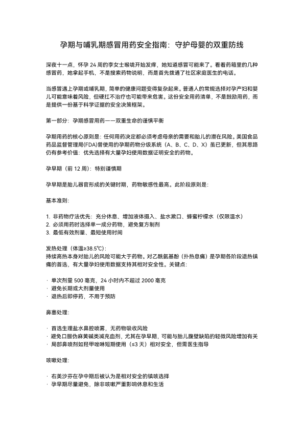 孕妇与哺乳期感冒用药安全指南:守护母婴的双重防线