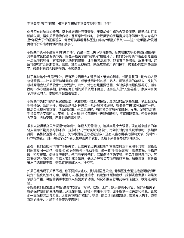 手指关节罢工预警:骨科医生揭秘手指关节炎的前世今生