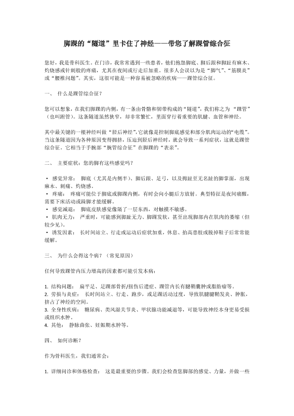 脚踝的“隧道”里卡住了神经——带您了解踝管综合征