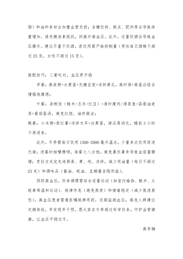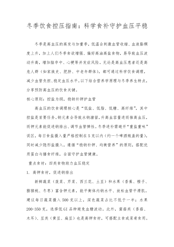 冬季饮食控压指南:科学食补守护血压平稳