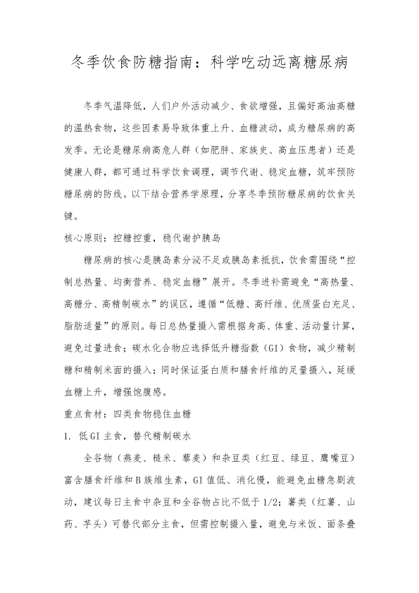 冬季饮食防糖指南:科学吃动远离糖尿病