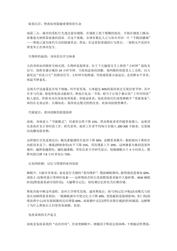 熬夜对健康的影响