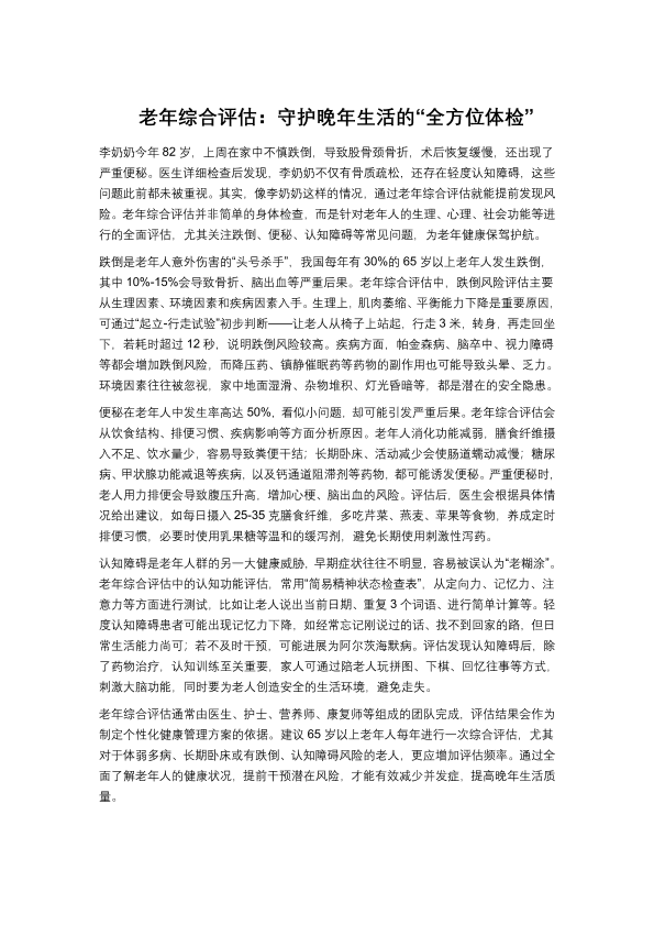 守护晚年生活的“全方位体检