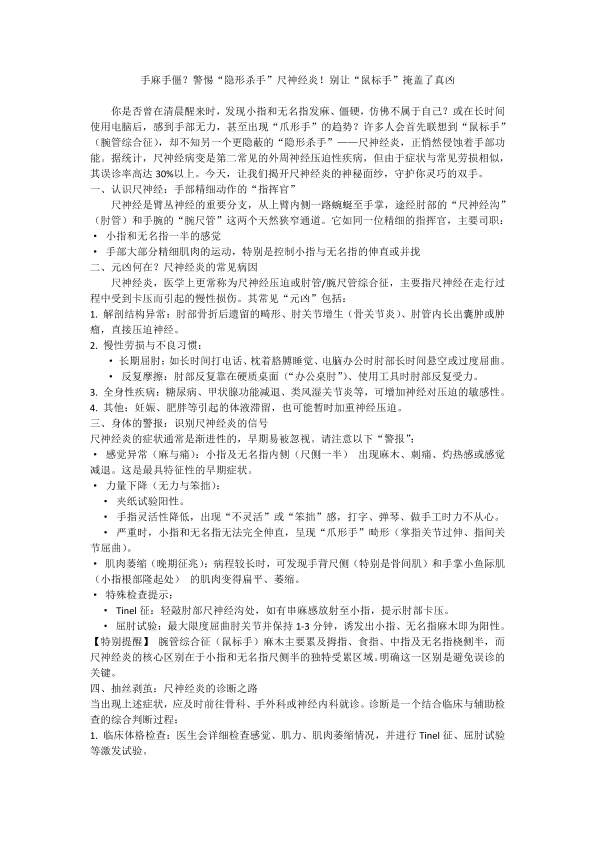文字类作品+手麻手僵?警惕“隐形杀手”尺神经炎!别让“鼠标手”掩盖了真凶+米世腾
