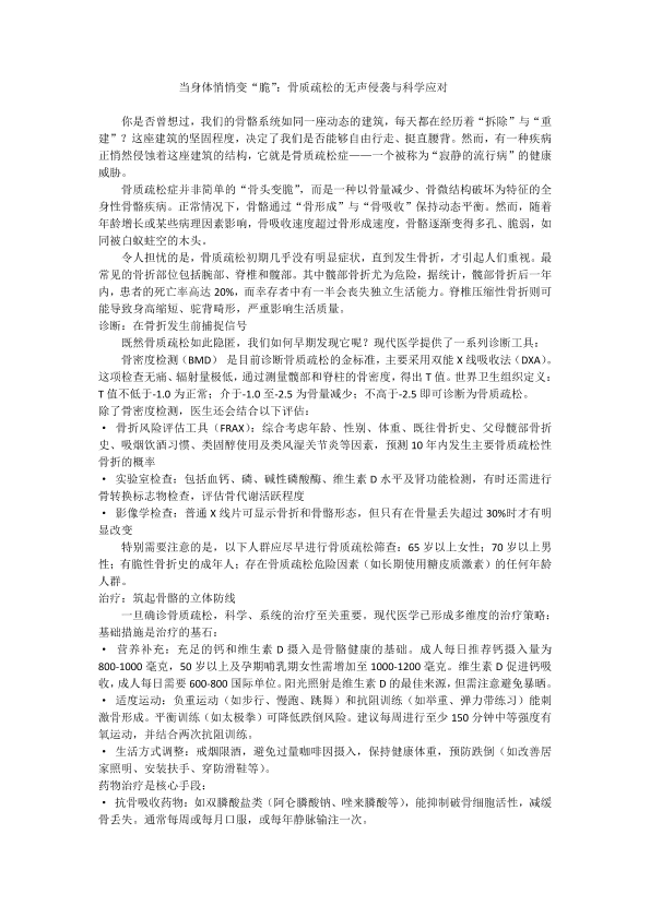 文字类作品+当身体悄悄变“脆”:骨质疏松的无声侵袭与科学应对+米世腾
