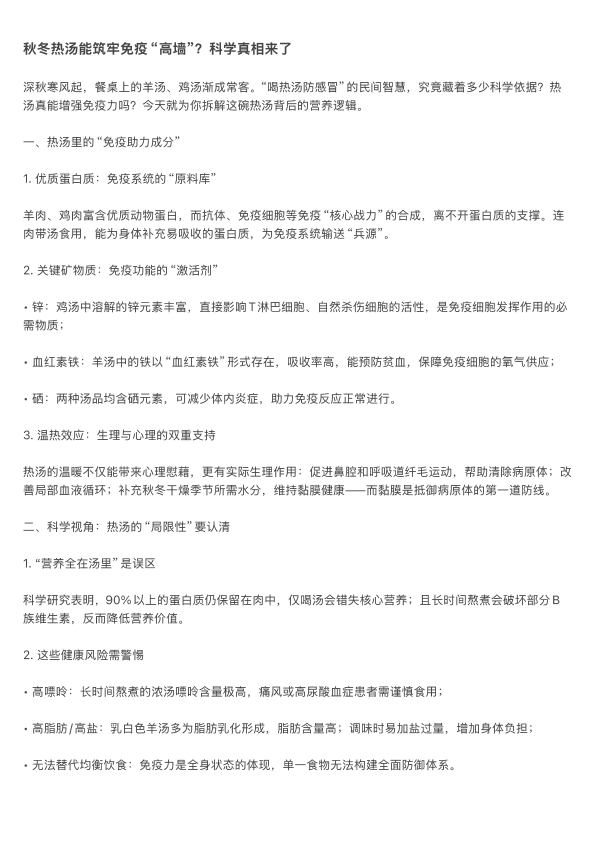 秋冬热汤能筑牢免疫“高墙”?科学真相来了