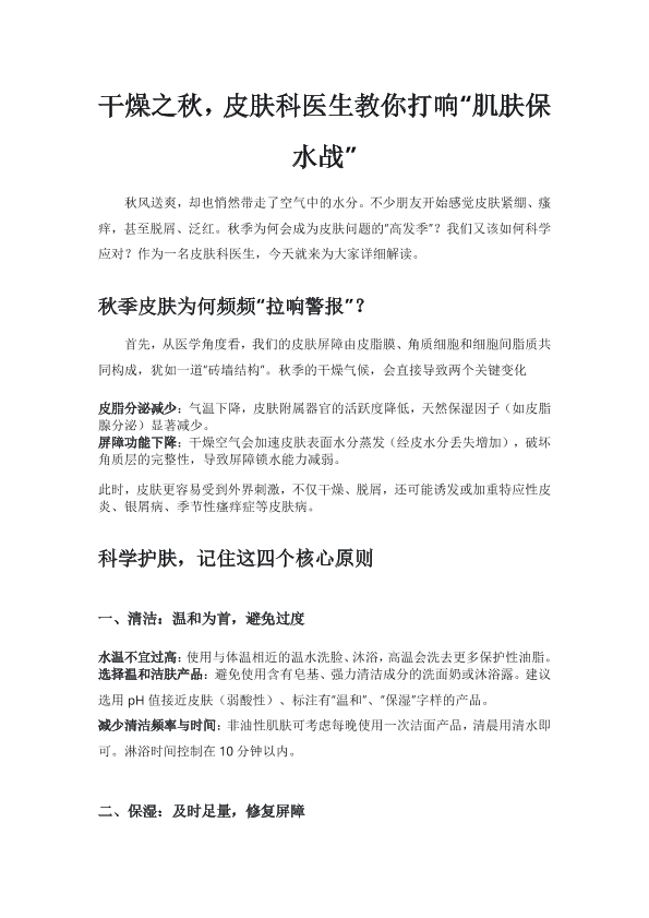 干燥之秋,皮肤科医生教你打响“肌肤保水战”