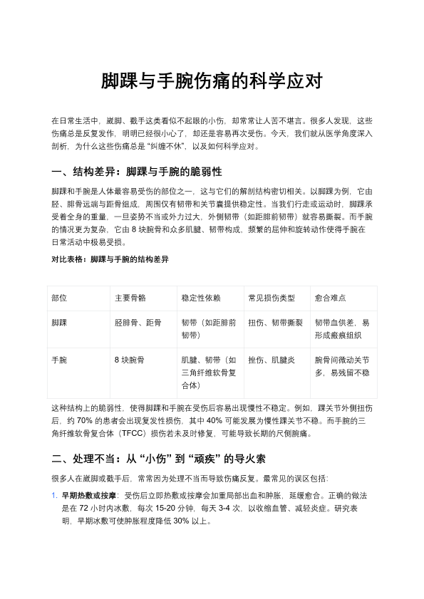 脚踝和手腕伤痛的科学应对