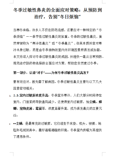 冬季过敏性鼻炎的全面应对策略:从预防到治疗,告别“冬日烦恼”