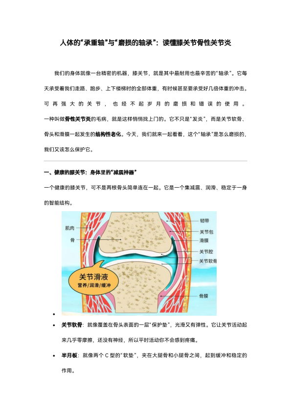 人体的“承重轴”与“磨损的轴承”:读懂膝关节骨性关节炎