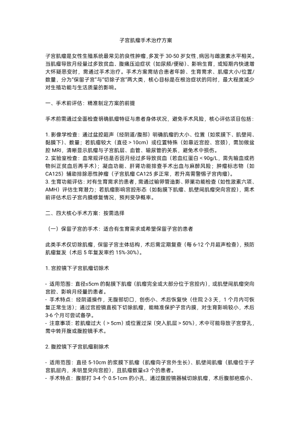 子宫肌瘤手术的治疗方案